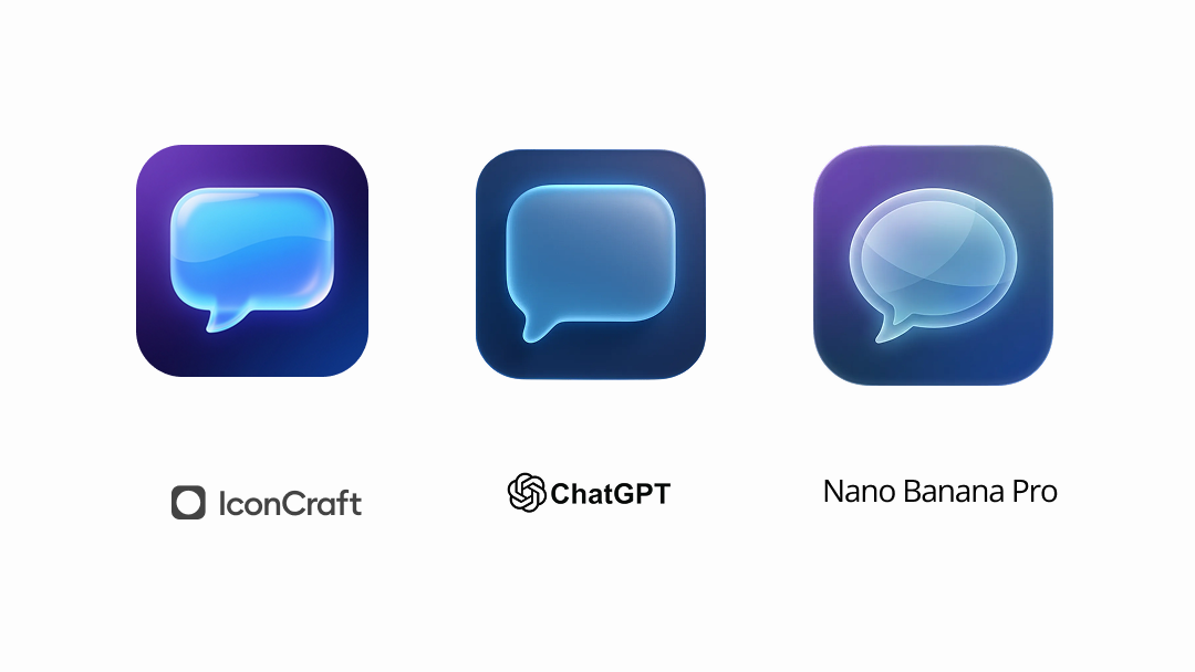So we tested it. We gave ChatGPT, Nano Banana, and IconCraft the exact same prompts—weather, chat, notes, meditation, developer tools, sleep tracker, brand logo, and media player. Same descriptions. Same style requests.